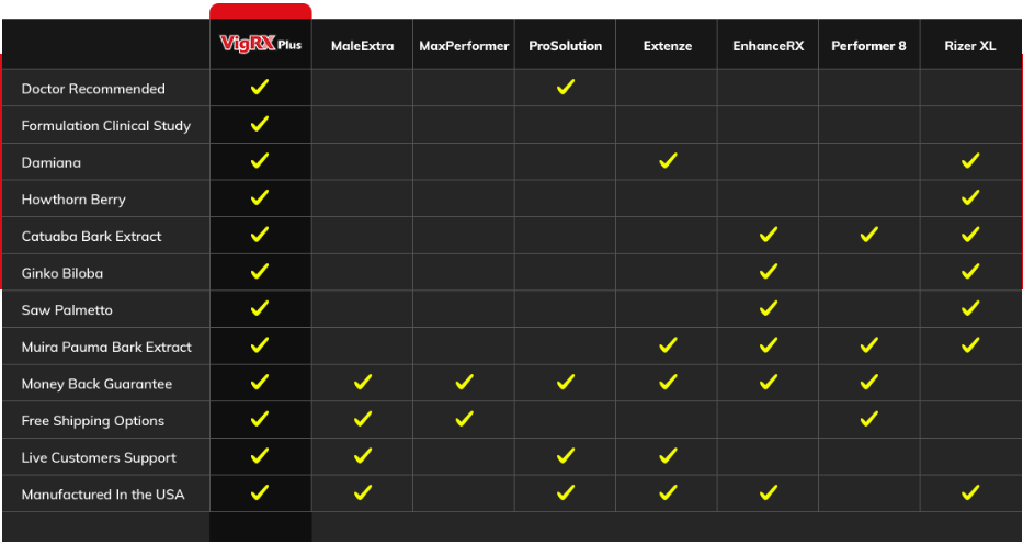 Just take a look below at the comparison chart between VigRX Plus and our competition.